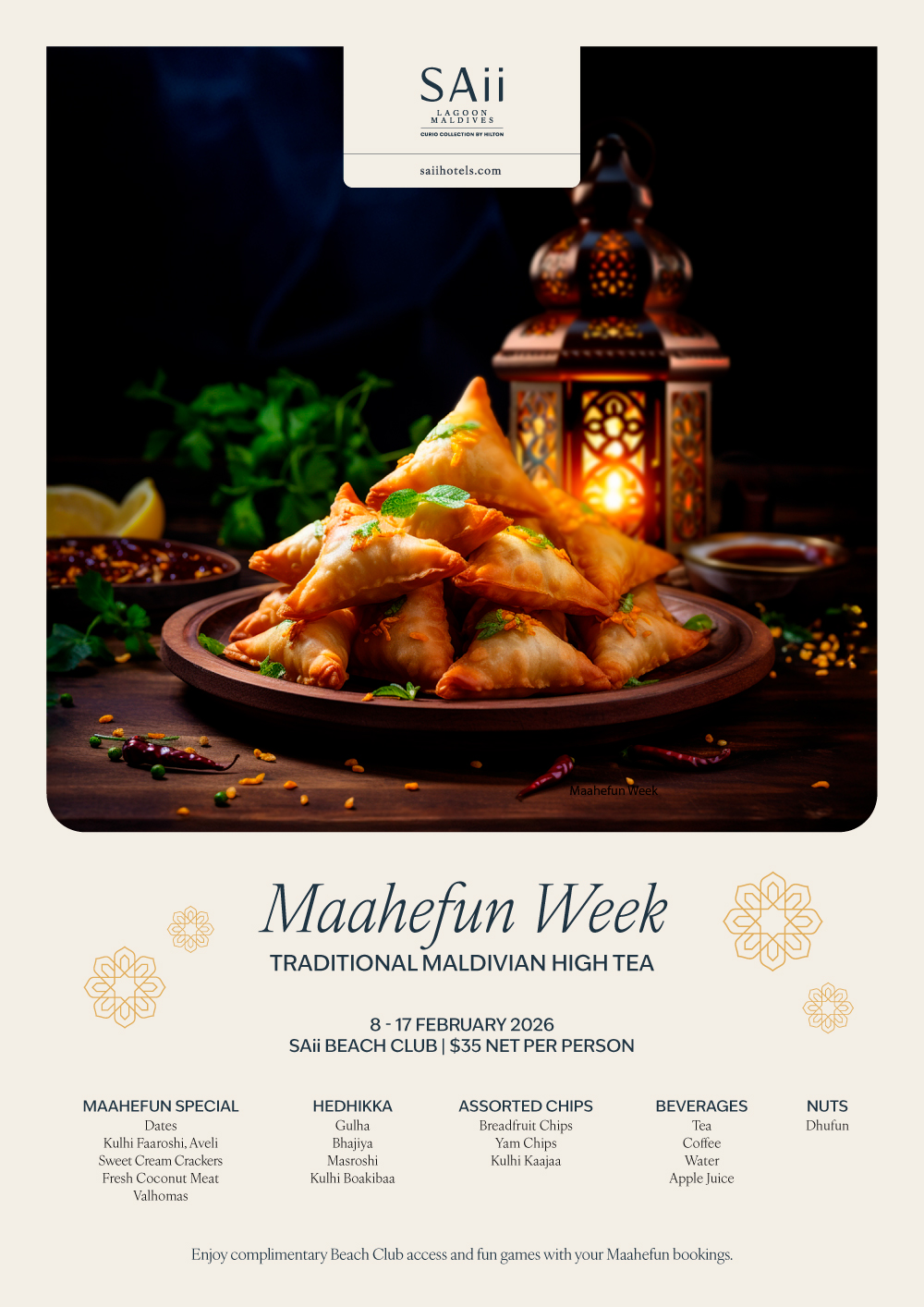 Guests will also enjoy complimentary access to the SAii Beach Club and fun games with every Maahifun booking, making this a perfect way to relax, connect, and savour the island culture.