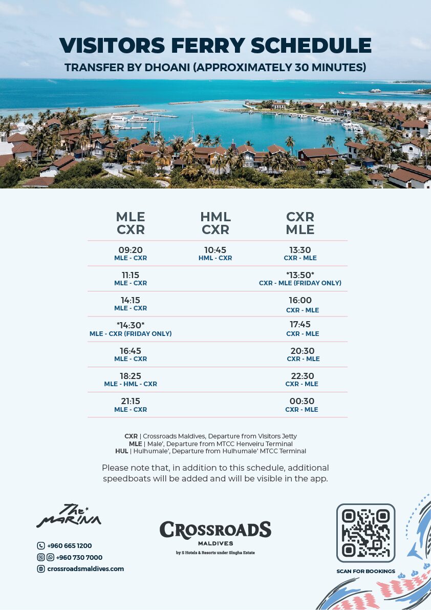 Whether you’re seeking a tranquil getaway or exciting watersports, our day pass offers a glimpse into the beauty and indulgence of CROSSROADS Maldives. Elevate your day in paradise at the Marina.